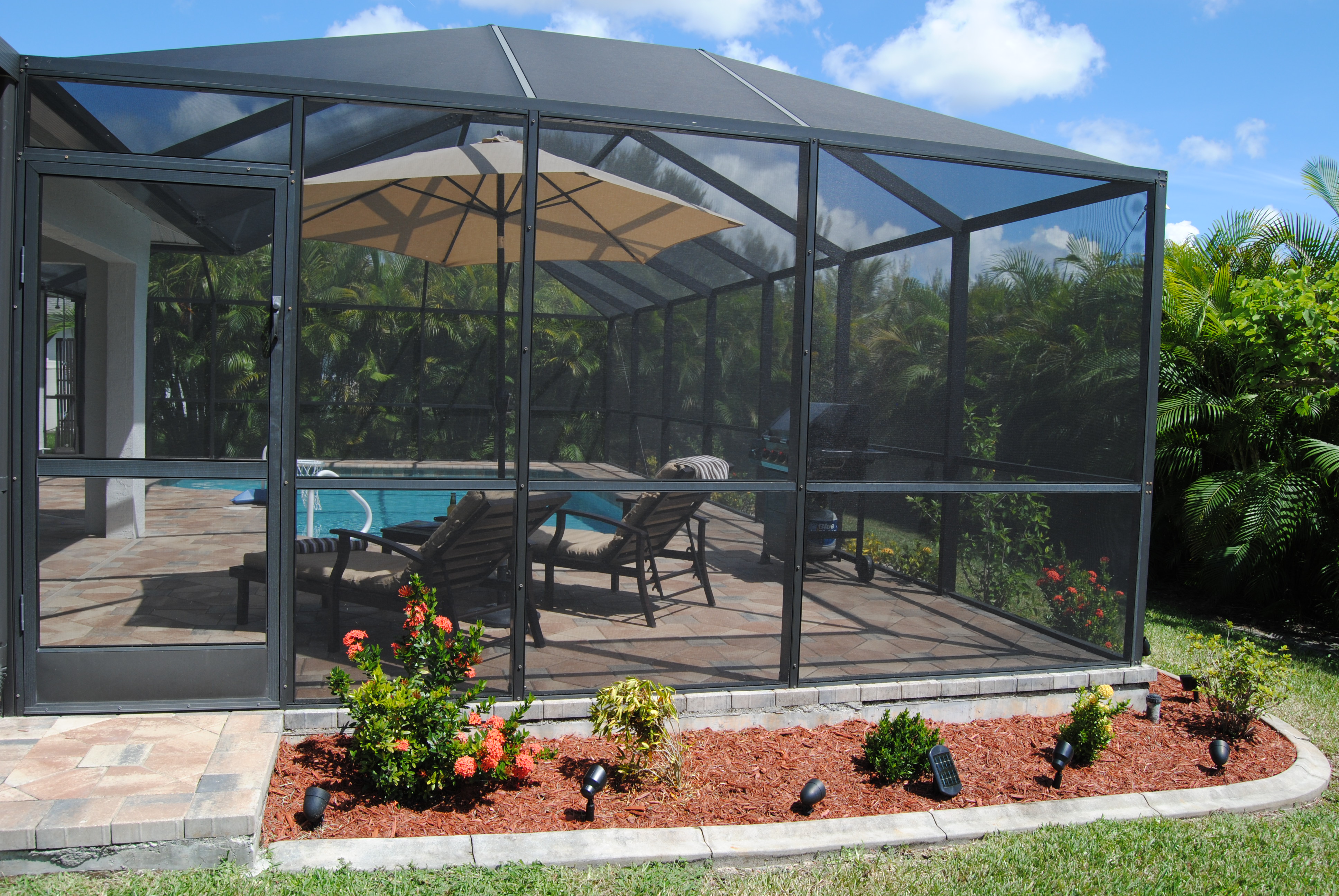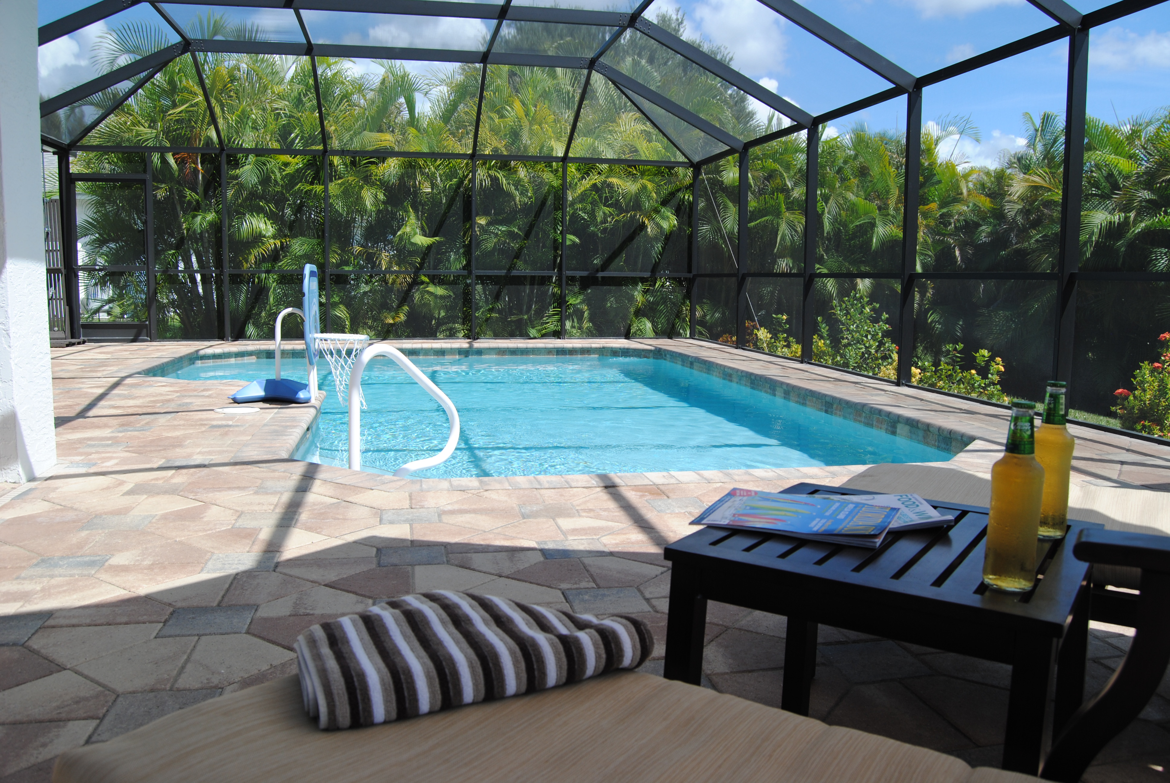 Die Villa Alegria bietet auf einem 1.000 Quadratmeter großen Grundstück eine im Mai 2012 neu gebaute, große Terrasse mit Pool und Cage eingebettet in einen mit Palmen bewachsenen Garten, der Ihnen ein Maximum an Privatsphäre bietet und trotzdem den Blick nicht zu sehr einschränkt.