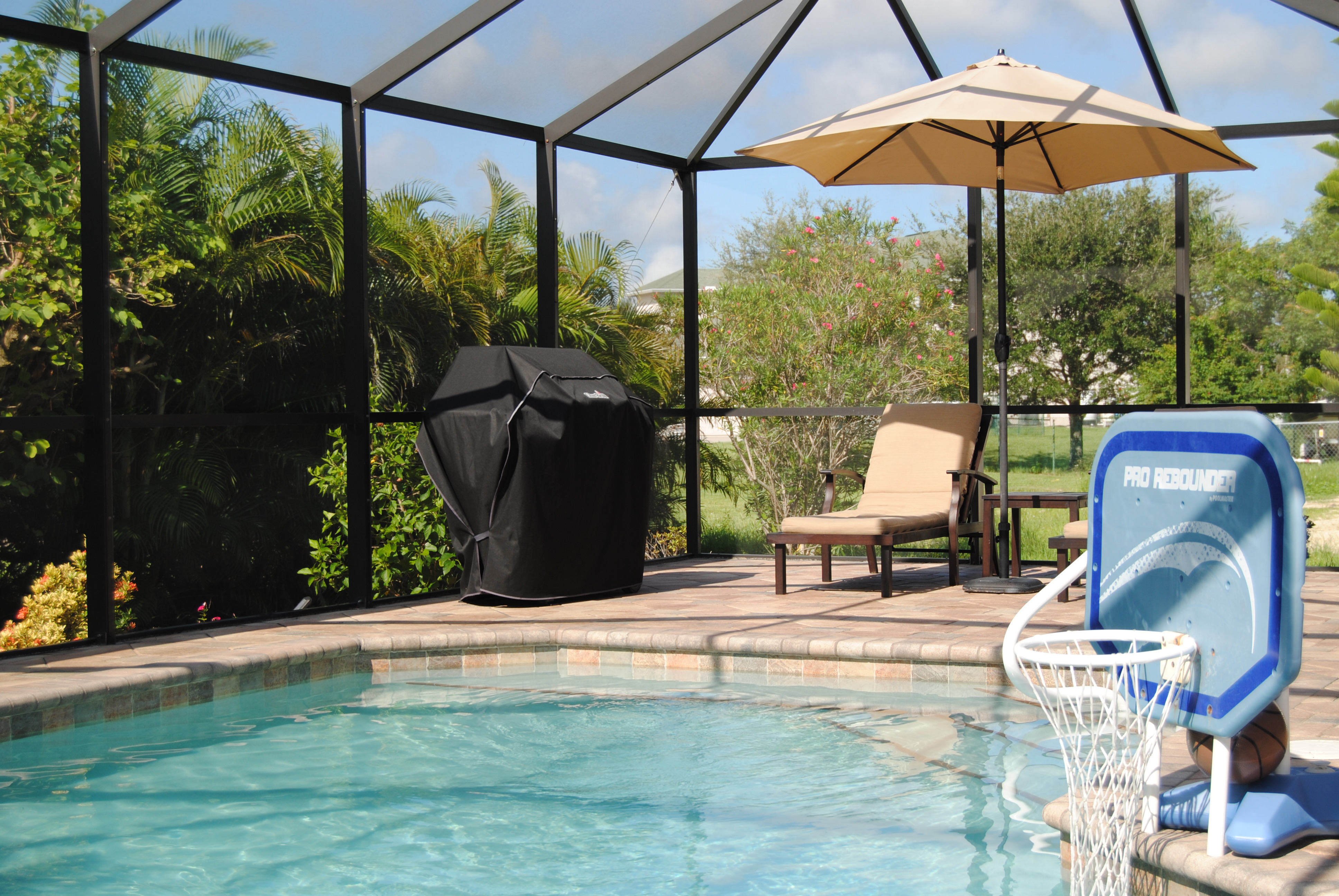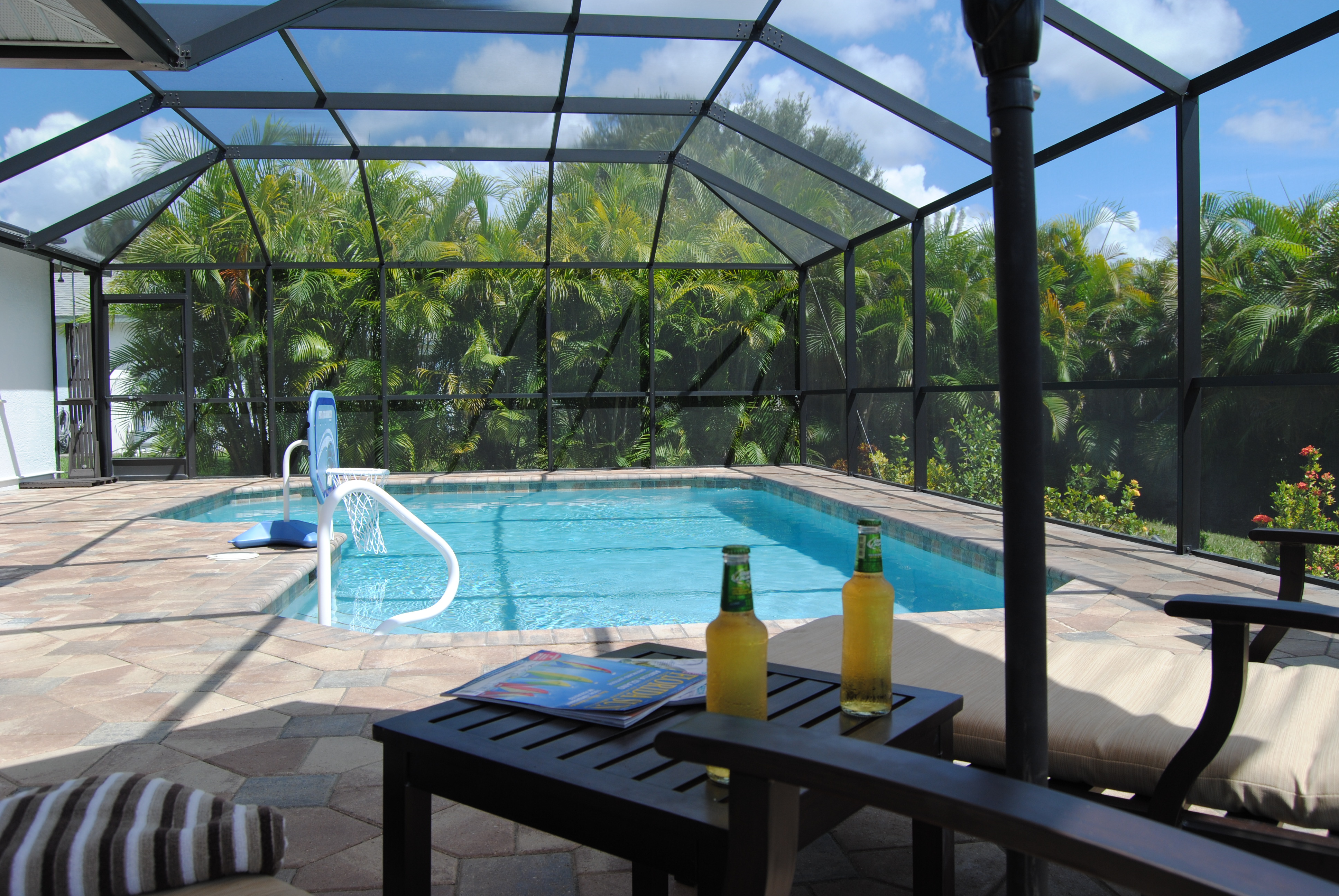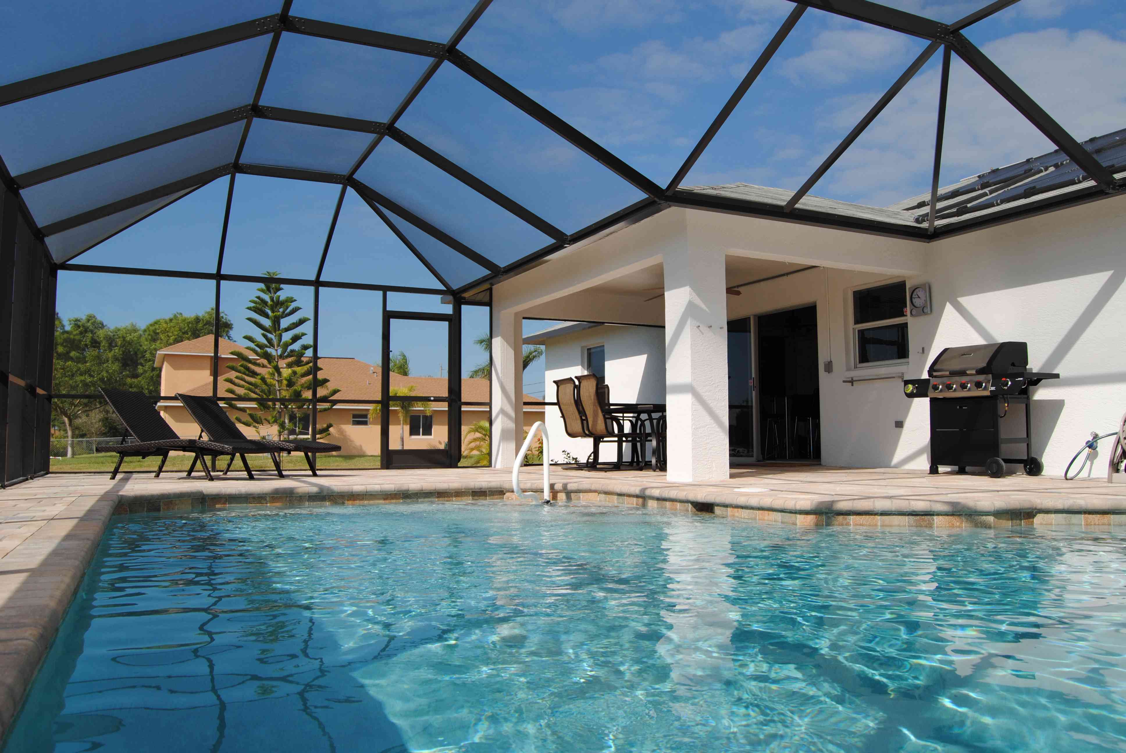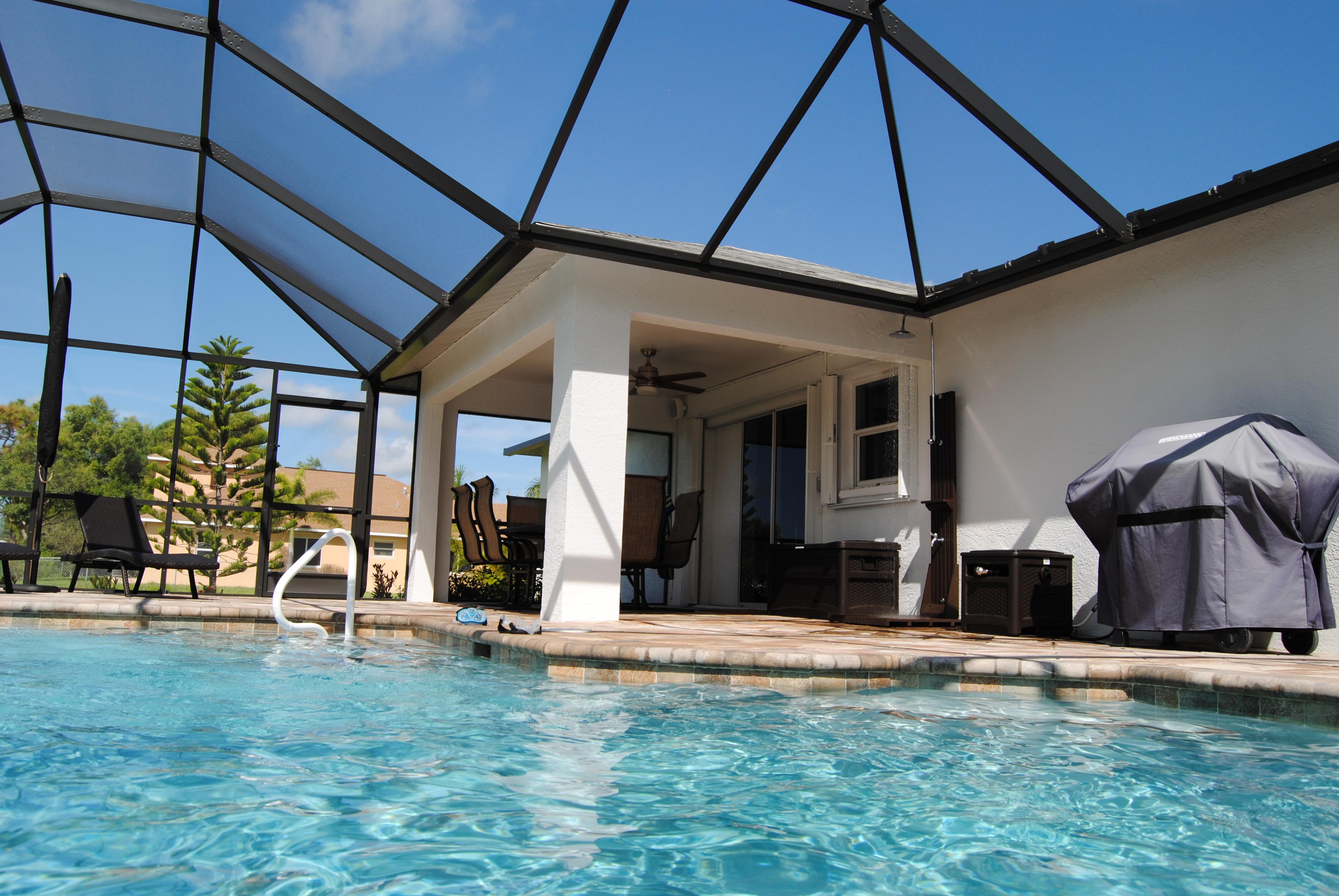 Der im Mai 2012 gebaute große Pool ergänzt durch die Terasse mit sog. Pavern bietet das perfekte Urlaubsvergnügen. Relaxen Sie nach dem Bad im Pool auf den Alusonnenliegen mit bequemen Polstern beim schmökern in einer von vielen verschiedenen Zeitschriften, die wir im Abo kostenlos unseren Gästen zur Verfügung stellen. Der Pool wird durch eine deutsche Qualitäts-Solarheizung nebst elektronischer Steuerung beheizt, so dass Ihnen im Gegensatz zu den sonst üblichen elektrischen Poolheizungen keine zusätzlichen Stromkosten entstehen.