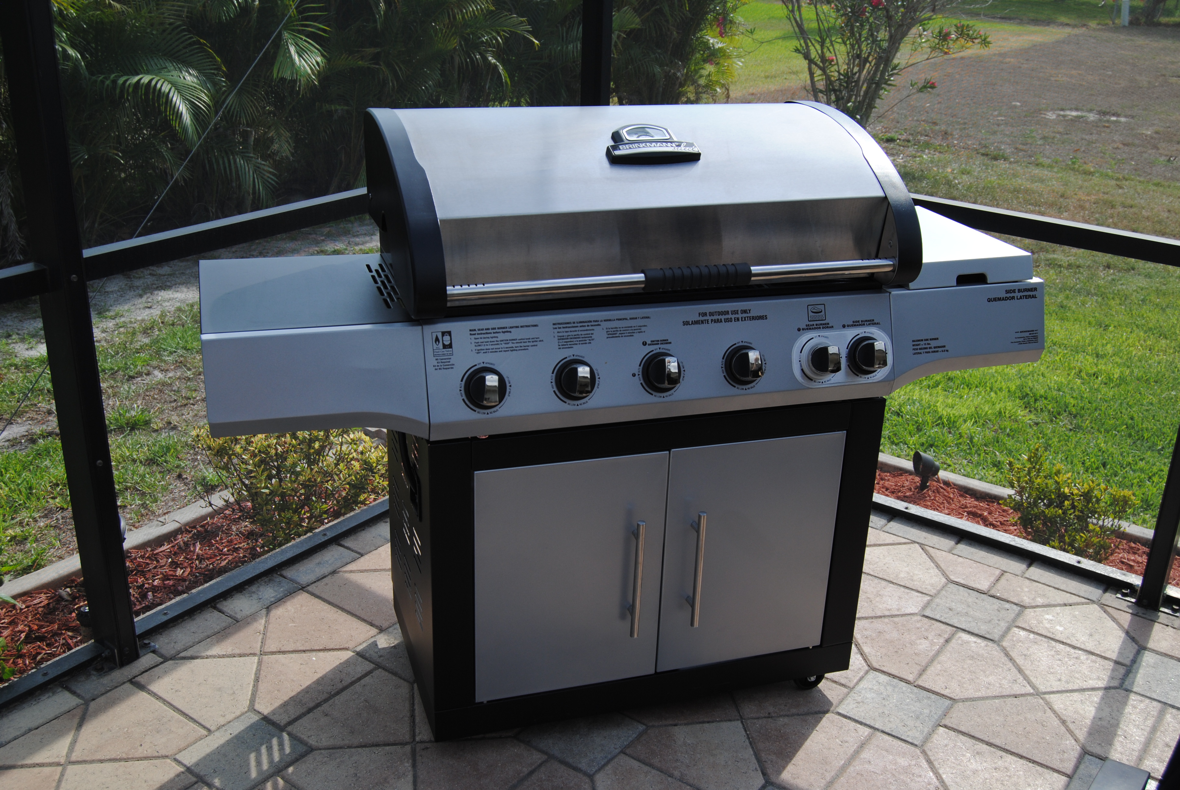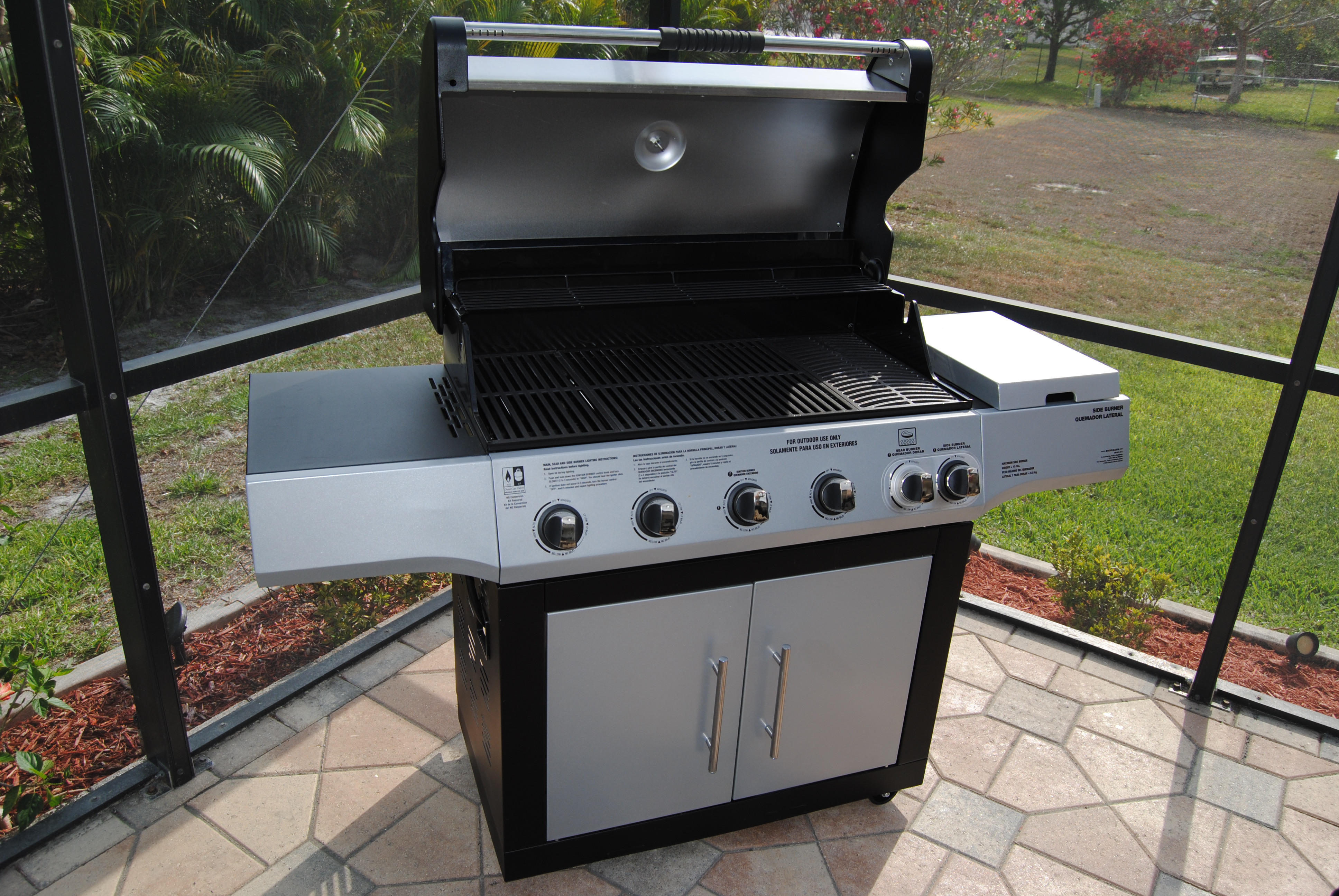 Ein im April 2017 neu angeschaffter großer Propangasgrill mit 4 Brennstellen plus speziellem Sears-Steak-Burner sorgt - ergänzt durch umfangreiches Zubehör - für das perfekte Barbeque-Vergnügen auf der Terrasse. So gelingen Steaks, Burger und Seafood garantiert.